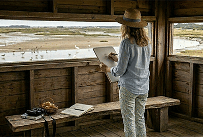 Depuis les observatoires de la réserve naturelle, prenez le temps d’observer et de dessiner la nature qui vous entoure.